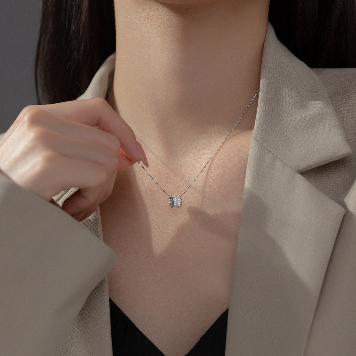 s925 sterling silver simple fashion rhinestone circle ball necklace